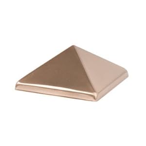 Post cap Decorate your porch, deck or fence Easy to install Provide the durability and the look that will help prevent early deterioration of the posts they decorate Made of lightweight aluminum Copper pyramid cap 4" x 4" Carded